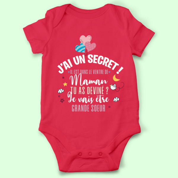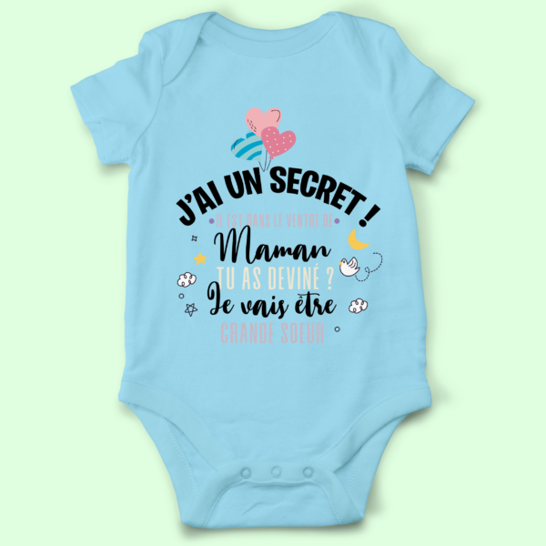 BODY BÉBÉ MANCHES COURTES “J’AI UN SECRET IL EST DANS LE VENTRE DE MAMAN”