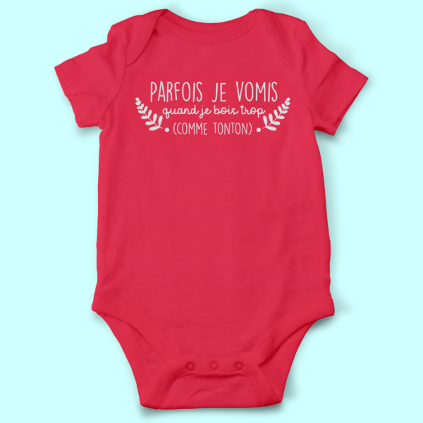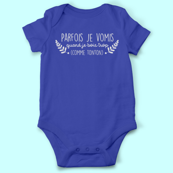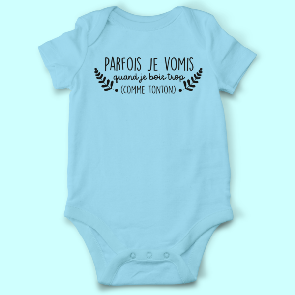 BODY BÉBÉ MANCHES COURTES “PARFOIS JE VOMIS QUAND JE BOIS TROP COMME TONTON”