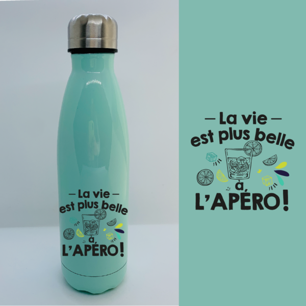 BOUTEILLE ISOTHERME “LA VIE EST PLUS BELLE À L’APÉRO”