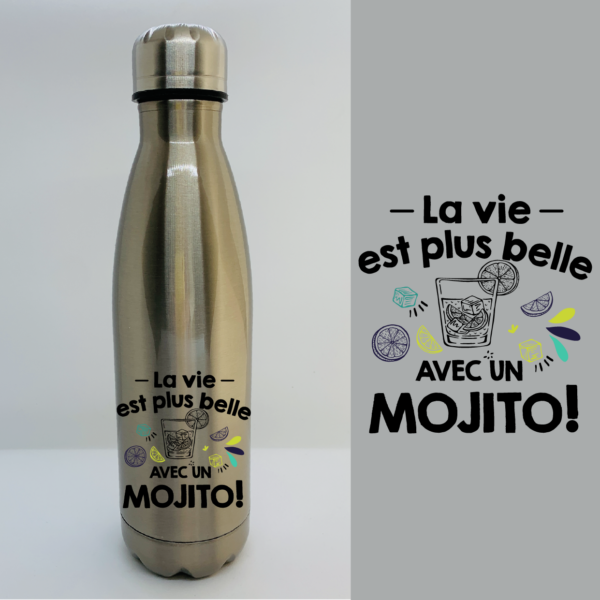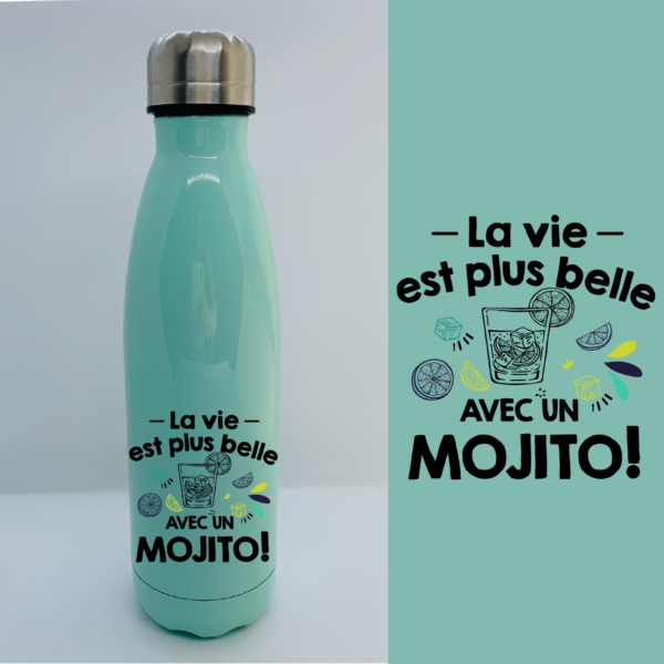 BOUTEILLE ISOTHERME “LA VIE EST PLUS BELLE AVEC UN MOJITO”