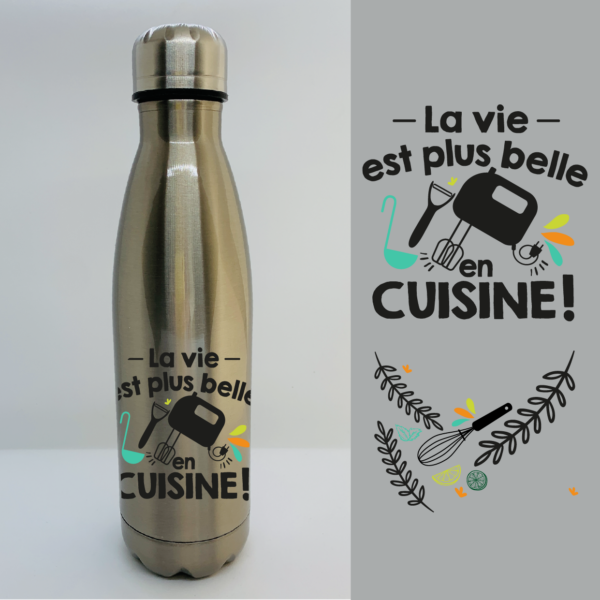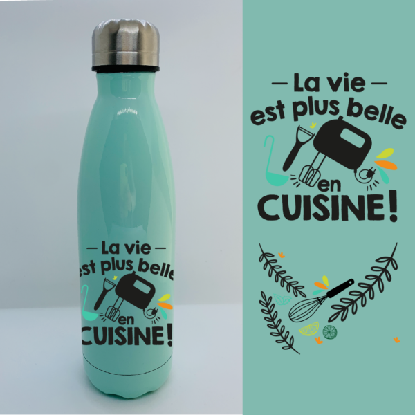 BOUTEILLE ISOTHERME “LA VIE EST PLUS BELLE EN CUISINE”