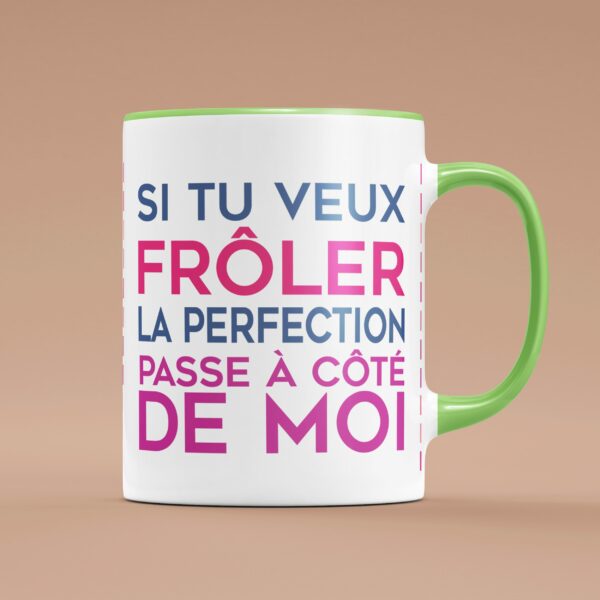 TASSE “SI TU VEUX FRÔLER LA PERFECTION PASSE À CÔTÉ DE MOI”
