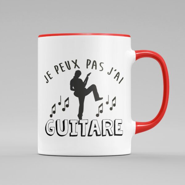 TASSE “JE PEUX PAS J’AI GUITARE” Matériaux: Tasse en céramique. Contenance: Peut contenir jusqu’à 330 ml. Entretien: Lavable au lave-vaisselle et micro-onde.