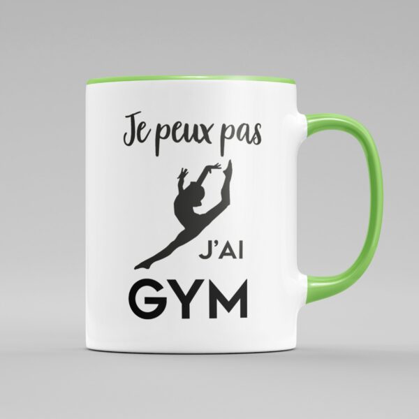 TASSE “JE PEUX PAS J’AI GYM” (SAUT) Matériaux: Tasse en céramique. Contenance: Peut contenir jusqu’à 330 ml. Entretien: Lavable au lave-vaisselle et micro-onde.