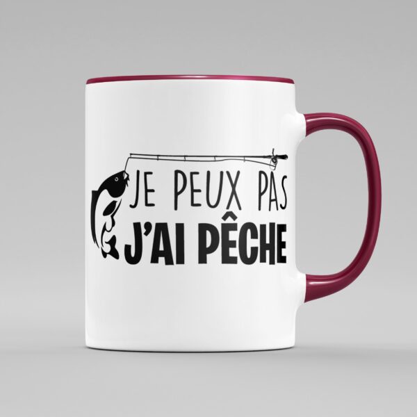 TASSE “JE PEUX PAS J’AI PÊCHE” Matériaux: Tasse en céramique. Contenance: Peut contenir jusqu’à 330 ml. Entretien: Lavable au lave-vaisselle et micro-onde.
