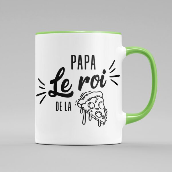 TASSE “PAPA LE ROI DE LA PIZZA” Matériaux: Tasse en céramique. Contenance: Peut contenir jusqu’à 330 ml. Entretien: Lavable au lave-vaisselle et micro-onde.