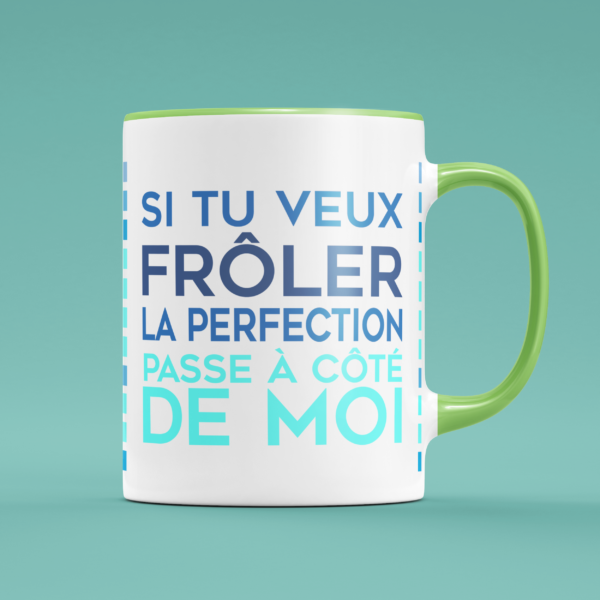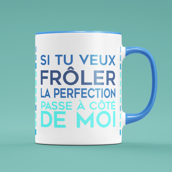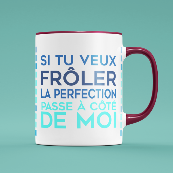 TASSE “SI TU VEUX FRÔLER LA PERFECTION PASSE À CÔTÉ DE MOI”